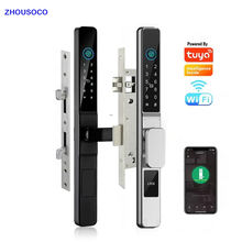 Tuya Wifi Slim smart lock Waterproof Fingerprint APP Password RFID Card Keyless Electronic Lock Aluminum Glass Sliding Door Lock